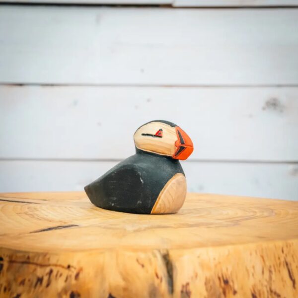 One of our original carving designs, this classic Atlantic puffin is carved to represent the bird as it would float on the ocean. It is the perfect gift or souvenir for the bird, wildlife or Newfoundland fan in your life or to add to your own home decor. This carving is hand carved in Quidi Vidi, Newfoundland.
