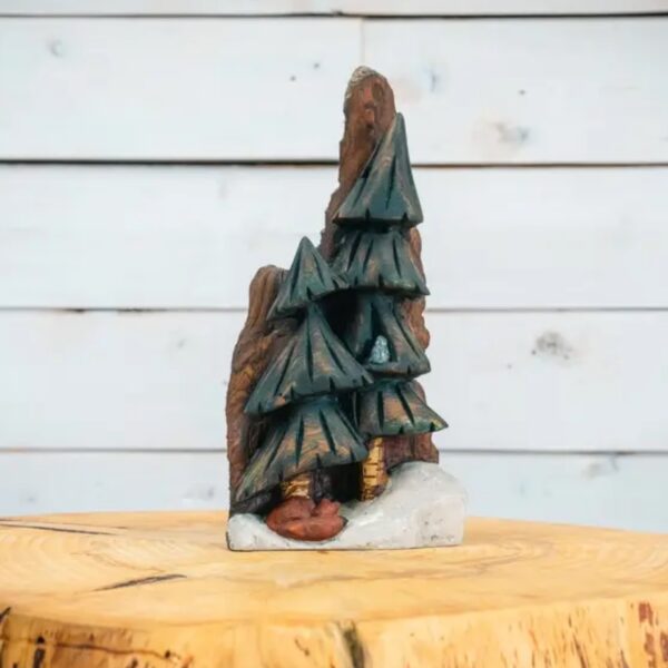 A red fox sleeps peacefully beneath a whimsical Newfoundland Pine Tree as a stoic owl keeps watch. The Solstice Slumber art piece is 100% hand crafted in Quidi Vidi, Newfoundland. This piece is the perfect gift for any Christmas lover to add to their decor collection.